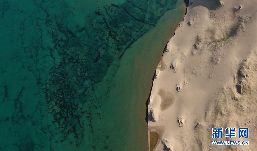這是青海湖沙島一角(7月28日攝)。盛夏傍晚,位于青海湖東北部的沙島,島內(nèi)湖泊星羅棋布,沙丘連綿起伏,風景別致。金沙與湖水掩映,在陽光的勾勒下形成一幅美麗的畫卷。新華社記者張宏祥攝