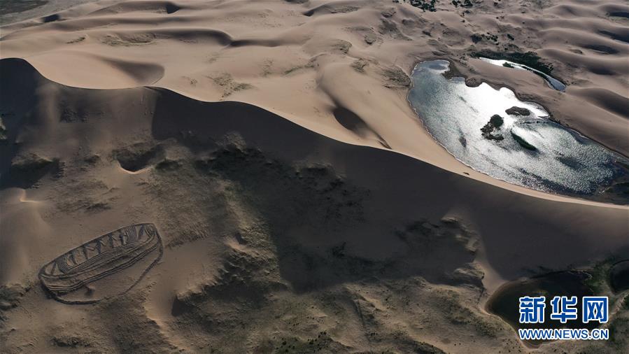 這是7月28日拍攝的青海湖沙島一隅(無人機照片)。盛夏傍晚,位于青海湖東北部的沙島,島內(nèi)湖泊星羅棋布,沙丘連綿起伏,風景別致。金沙與湖水掩映,在陽光的勾勒下形成一幅美麗的畫卷。新華社記者吳剛攝