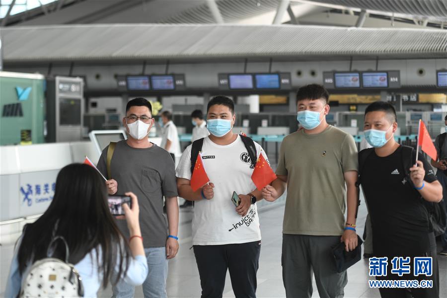 7月29日,在杭州蕭山國際機(jī)場,電力工程技術(shù)人員在進(jìn)入安檢通道前合影。當(dāng)日,中國能源建設(shè)集團(tuán)浙江火電建設(shè)有限公司的113名電力工程技術(shù)人員在杭州蕭山國際機(jī)場集結(jié),啟程飛赴印度尼西亞首都雅加達(dá)。他們將重新投入到印尼多個“一帶一路”重點工程的建設(shè)中。新華社記者黃宗治攝