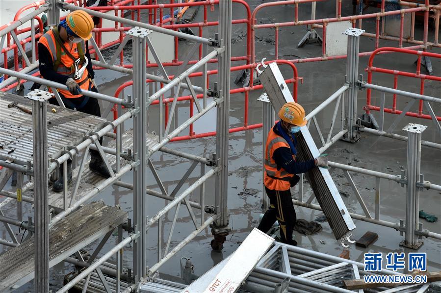 8月1日,工人在香港一工地工作。新華社記者盧炳輝攝