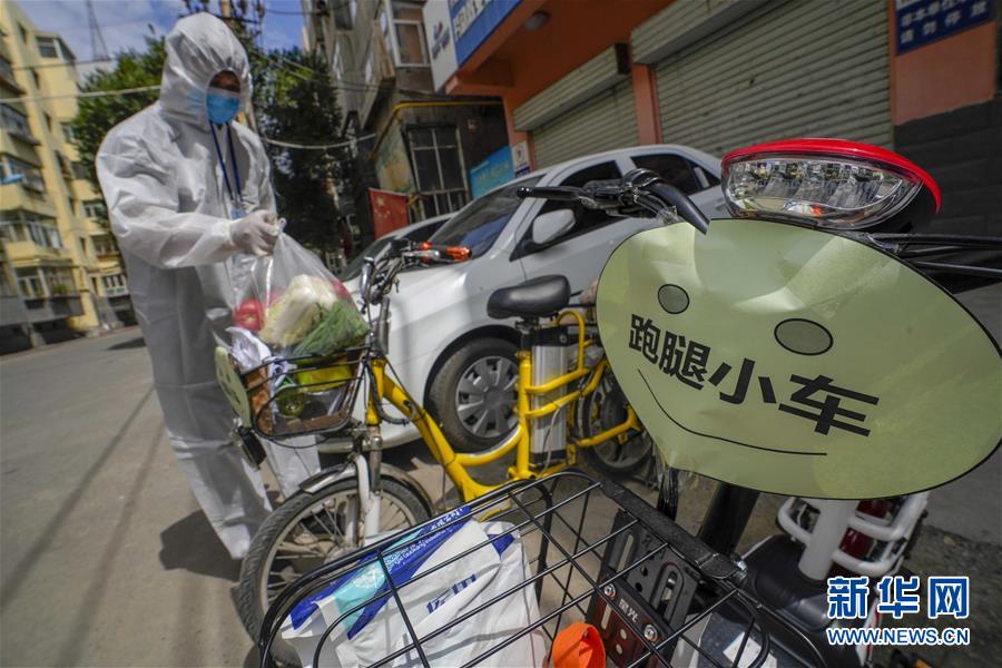 8月3日,在烏魯木齊天山區(qū)西河壩前街社區(qū),社區(qū)工作人員準(zhǔn)備騎上”跑腿小車“為居民送去生活物品。新疆烏魯木齊市天山區(qū)西河壩前街社區(qū)主次干道較多,院落分布分散。新冠肺炎疫情防控期間,社區(qū)整合現(xiàn)有資源,將暫時(shí)閑置的自行車、電動(dòng)車集中起來,貼上“跑腿小車”標(biāo)識(shí),成立便民服務(wù)隊(duì),社區(qū)工作人員通過“跑腿小車”可將居民網(wǎng)絡(luò)定制的“菜袋子”“藥盒子”快速送達(dá),給居民帶來方便。新華社記者趙戈攝