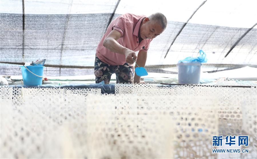 8月4日,張忠堡村村民趙世龍?jiān)谟^察育種筐里的觀賞魚(yú)排卵狀況。新華社記者姚劍鋒攝