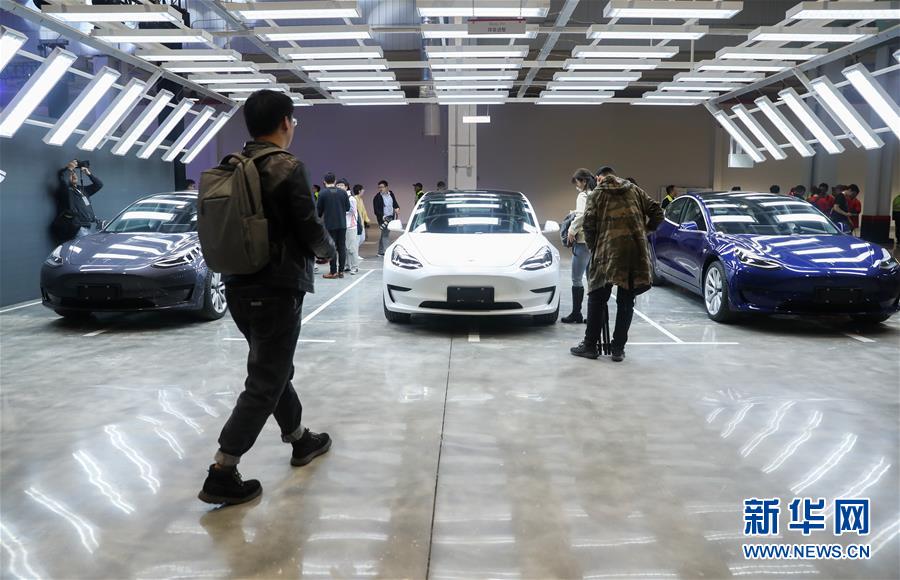 這是1月7日在特斯拉上海超級(jí)工廠拍攝的中國制造Model3汽車。新華社記者方喆攝