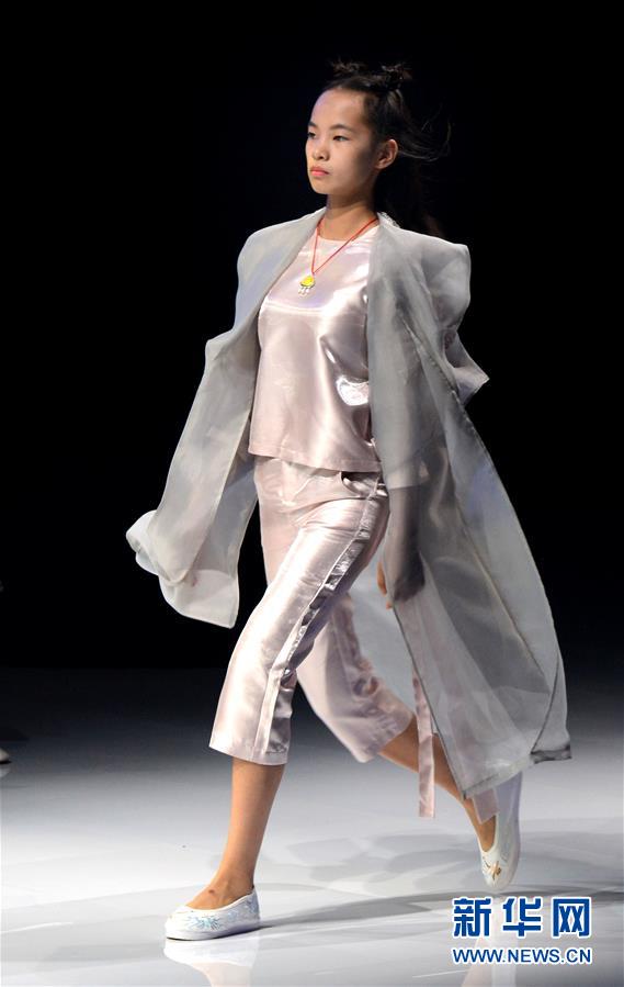 8月7日,小模特在T臺(tái)上展示童裝。當(dāng)日,2020中國(guó)(河南)國(guó)際大學(xué)生時(shí)裝周舉行童裝設(shè)計(jì)專(zhuān)場(chǎng)展示。8月5日至7日,2020中國(guó)(河南)國(guó)際大學(xué)生時(shí)裝周在河南省新密市豫發(fā)密蘭小鎮(zhèn)舉行。新華社發(fā)(海雨涵攝)