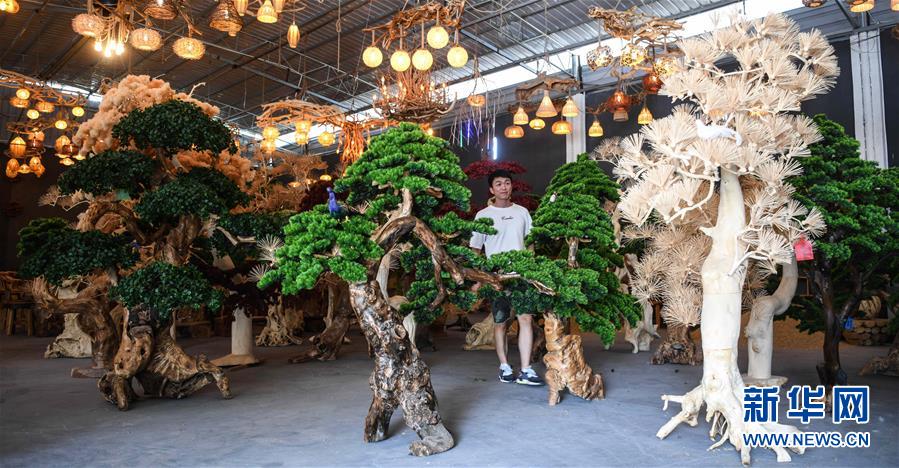 這是8月7日在永??h永安鄉(xiāng)根雕工藝品就業(yè)扶貧車間拍攝的根雕工藝品。2017年以來,廣西桂林市永福縣永安鄉(xiāng)通過幫扶返鄉(xiāng)青年創(chuàng)業(yè)的方式,建立起根雕工藝品就業(yè)扶貧車間,組織貧困群眾進(jìn)車間務(wù)工學(xué)藝,把當(dāng)?shù)刎S富的朽木和柑橘樹根枝資源利用起來,加工成盆景、茶桌、吊燈等根雕工藝品,不僅幫助貧困群眾在家門口掌握一技之長(zhǎng),還讓他們?cè)诿撠氄焙髮?shí)現(xiàn)穩(wěn)定增收。新華社記者張愛林?jǐn)z