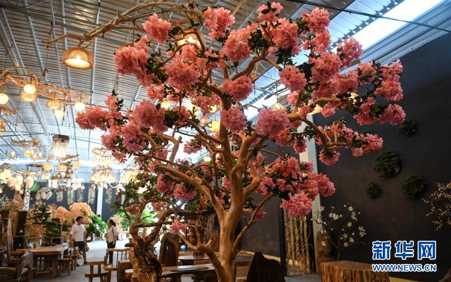 這是8月7日在永??h永安鄉(xiāng)根雕工藝品就業(yè)扶貧車間拍攝的根雕工藝品。2017年以來,廣西桂林市永??h永安鄉(xiāng)通過幫扶返鄉(xiāng)青年創(chuàng)業(yè)的方式,建立起根雕工藝品就業(yè)扶貧車間,組織貧困群眾進車間務工學藝,把當地豐富的朽木和柑橘樹根枝資源利用起來,加工成盆景、茶桌、吊燈等根雕工藝品,不僅幫助貧困群眾在家門口掌握一技之長,還讓他們在脫貧摘帽后實現穩(wěn)定增收。新華社記者張愛林攝