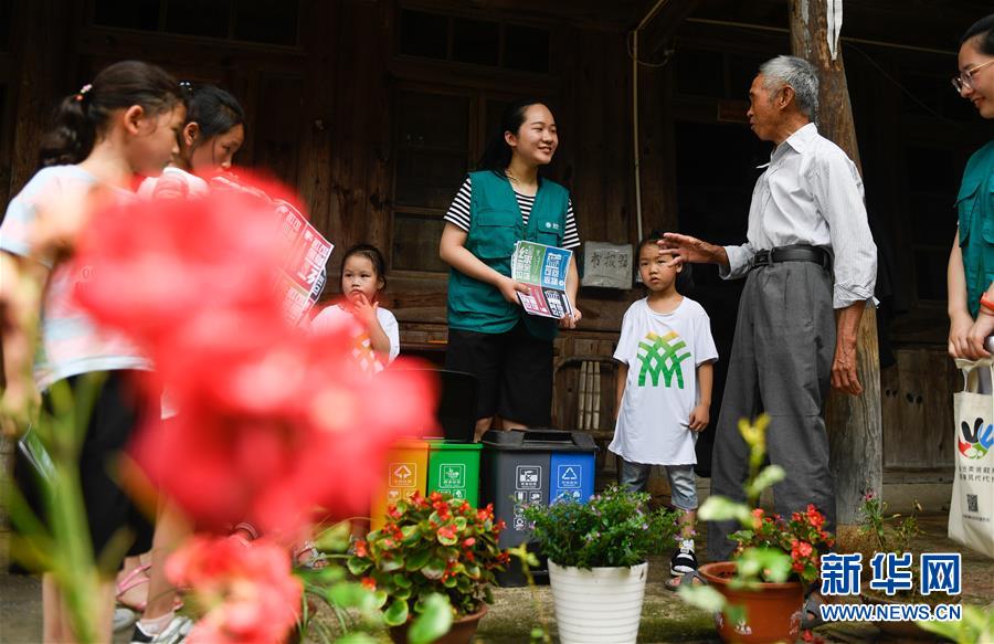 寧波市奉化區(qū)的小草志愿服務隊志愿者(中)在大堰鎮(zhèn)箭嶺村向村民和小學生講解垃圾分類的方法(2019年6月30日攝)。近年來,浙江省通過創(chuàng)新宣傳教育,多措并舉促進垃圾分類投放、收運及處置的良性循環(huán),引領垃圾分類成為城鄉(xiāng)居民的生活新風尚。新華社記者黃宗治攝。