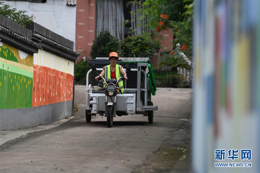 湖州市吳興區(qū)妙西鎮(zhèn)龍山村清運人員在村里收集生活垃圾(8月5日攝)。近年來,浙江省通過創(chuàng)新宣傳教育,多措并舉促進垃圾分類投放、收運及處置的良性循環(huán),引領垃圾分類成為城鄉(xiāng)居民的生活新風尚。新華社記者黃宗治攝。