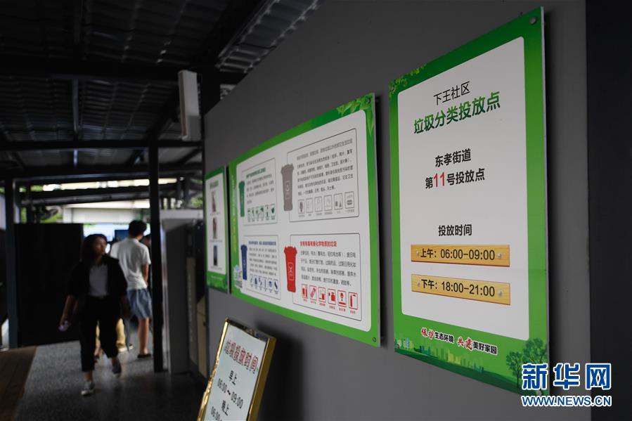 在金華市金東區(qū)東孝街道一社區(qū)拍攝的垃圾分類投放點(7月16日攝)。近年來,浙江省通過創(chuàng)新宣傳教育,多措并舉促進垃圾分類投放、收運及處置的良性循環(huán),引領垃圾分類成為城鄉(xiāng)居民的生活新風尚。新華社記者黃宗治攝。