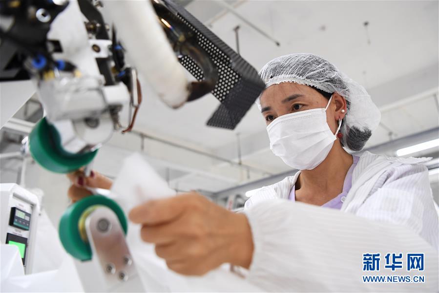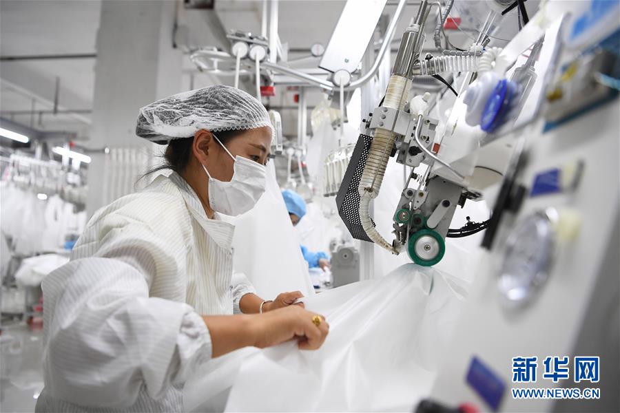 8月9日,甘肅拓奇扶貧車間的員工在服裝加工生產(chǎn)線上作業(yè)。甘肅拓奇扶貧車間位于甘肅省臨夏回族自治州積石山縣,是依托東西部扶貧協(xié)作平臺引進(jìn)的服裝加工企業(yè)。扶貧車間建成投產(chǎn)以來帶動就業(yè)近300人,其中吸納建檔立卡貧困戶就業(yè)110人,實(shí)現(xiàn)了貧困群眾就地就近就業(yè)增收的目的,為助推當(dāng)?shù)孛撠毠?jiān)及縣域經(jīng)濟(jì)發(fā)展發(fā)揮了重要作用。新華社記者邢廣利攝。