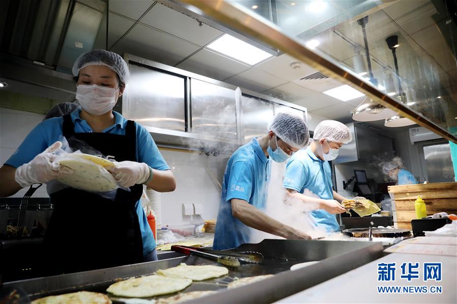 在上海地鐵13號線世博會博物館地鐵站附近的一家盒小馬服務點,工作人員在制作煎餅果子等早餐餐品(7月17日攝)。近年來,在上海崛起了一批以盒馬、叮咚、拼多多為代表的在線經濟新力量,在助力脫貧攻堅、提升城市居民品質生活方面發(fā)揮著重要作用。電商加持下的“云農業(yè)”加速發(fā)展,一端為市民提供更便宜新鮮的農產品,另一端讓山區(qū)的優(yōu)質產品加速進入城市餐桌,化解交通不便、農產品滯銷等問題。新華社記者方喆攝。