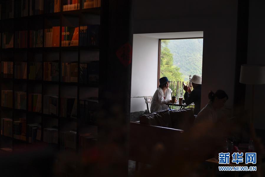 游客在浙江省麗水市松陽縣四都鄉(xiāng)陳家鋪村的先鋒書店平民書局閱讀(7月17日攝)。新華社記者黃宗治攝。