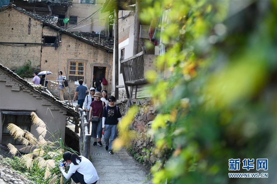 游客在浙江省麗水市松陽縣四都鄉(xiāng)陳家鋪村游覽(7月17日攝)。新華社記者黃宗治攝。