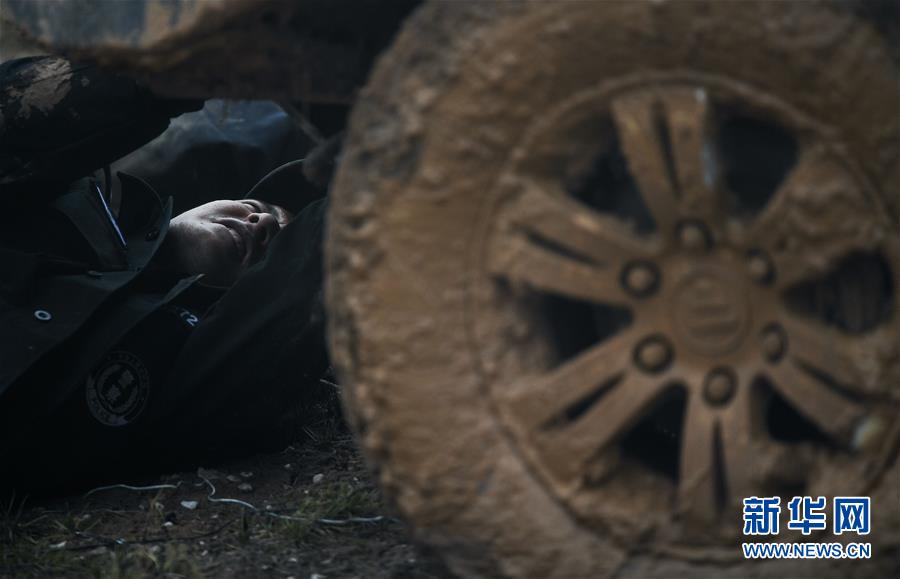 7月6日,卓乃湖保護站站長秋培扎西在可可西里地區(qū)修理車輛。新華社記者薛玉斌攝