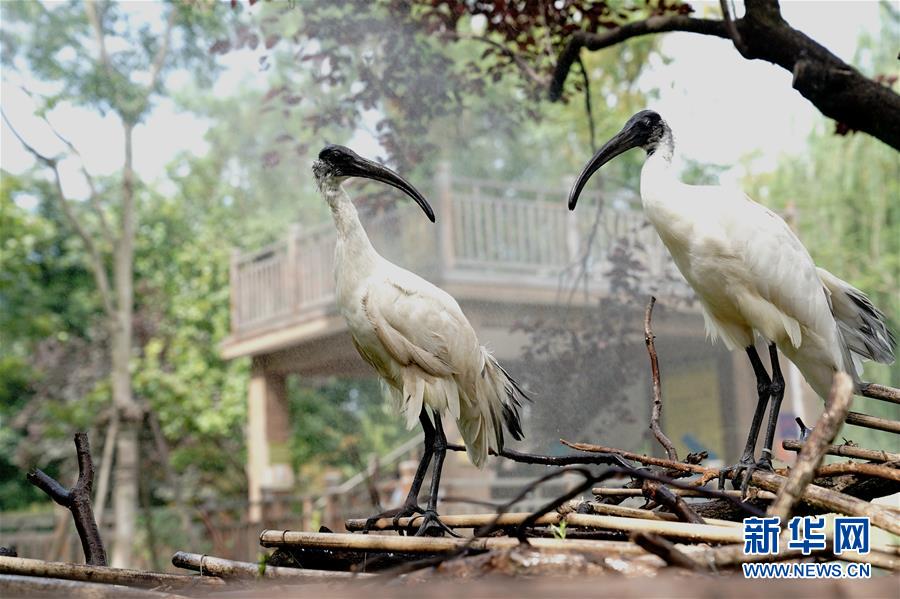 8月11日,上海動(dòng)物園的兩只白鹮在享受噴淋降溫。當(dāng)日,上海最高溫度達(dá)到35攝氏度,上海動(dòng)物園開啟園內(nèi)安裝的各種噴淋裝置,讓動(dòng)物們防暑降溫,樂享清涼。新華社記者張建松攝