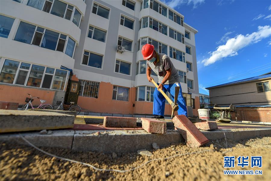 8月11日,工人在鎮(zhèn)賚縣慶生社區(qū)一老舊小區(qū)內鋪設路面方磚。2019年底開始,吉林省白城市鎮(zhèn)賚縣對超過20年房齡的老舊小區(qū)進行全面改造升級,優(yōu)先完成樓體內外墻面、樓頂防水、道路硬化工程,并協(xié)調各職能部門對地下管網、綠化美化等基礎設施問題進行統(tǒng)籌施工,減少后期二次施工造成的環(huán)境破壞和資源浪費。一期工程預計于今年10月完工,施工完成后,政府相關部門將為這些小區(qū)統(tǒng)一配備物業(yè)公司,解決后期設施維護問題。新華社記者張楠攝