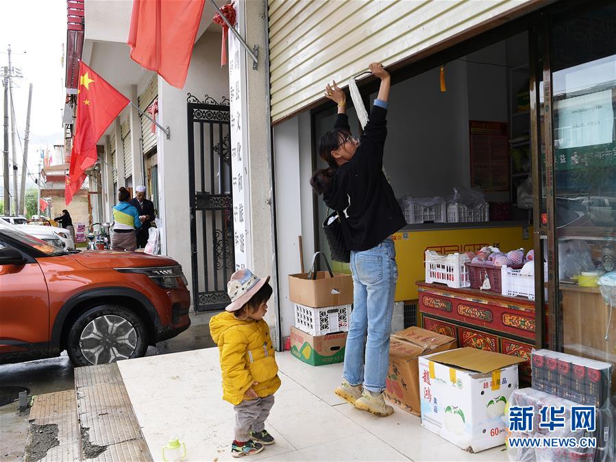 格桑旺姆推開(kāi)蔬菜店的卷閘門(mén)準(zhǔn)備營(yíng)業(yè)(8月3日攝)。新華社記者 李賀 攝
