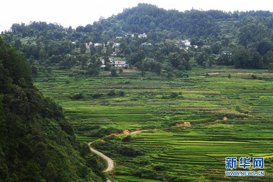 這是8月13日拍攝的鞍子鎮(zhèn)大林村梯田景色。時下,重慶市彭水苗族土家族自治縣鞍子鎮(zhèn)大林村的梯田景色迷人,構(gòu)成一幅幅山鄉(xiāng)田園美景。新華社記者王全超攝