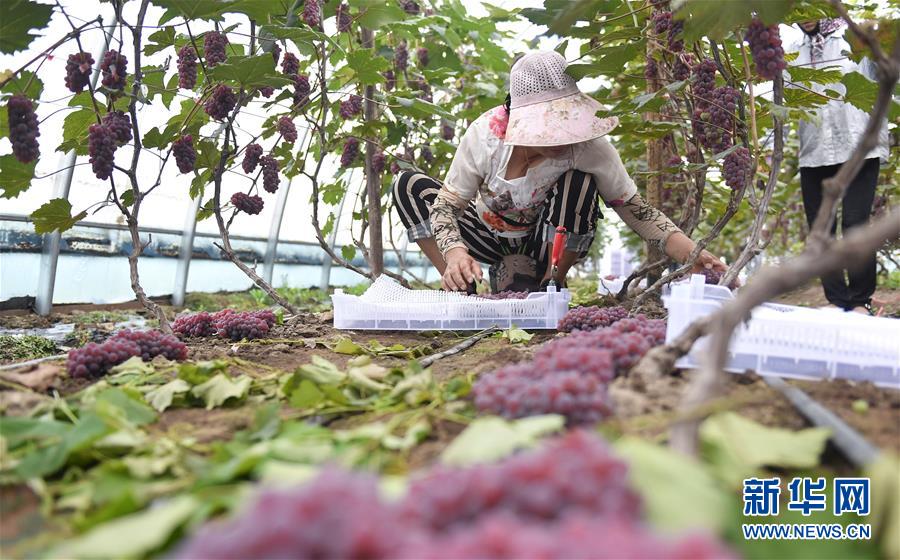 8月13日,在吉林省磐石市煙筒山鎮(zhèn)民主村,村民在葡萄大棚內(nèi)分裝葡萄。時(shí)下,吉林省磐石市煙筒山鎮(zhèn)棚膜葡萄園區(qū)內(nèi)的大棚葡萄進(jìn)入采摘季,農(nóng)民喜獲豐收。近年來(lái),當(dāng)?shù)赝ㄟ^“共創(chuàng)”與“扶持”相結(jié)合的模式大力發(fā)展特色農(nóng)業(yè),建設(shè)葡萄種植大棚300余棟,以此帶動(dòng)村集體經(jīng)濟(jì)發(fā)展,助力農(nóng)民增收致富。新華社記者許暢攝
