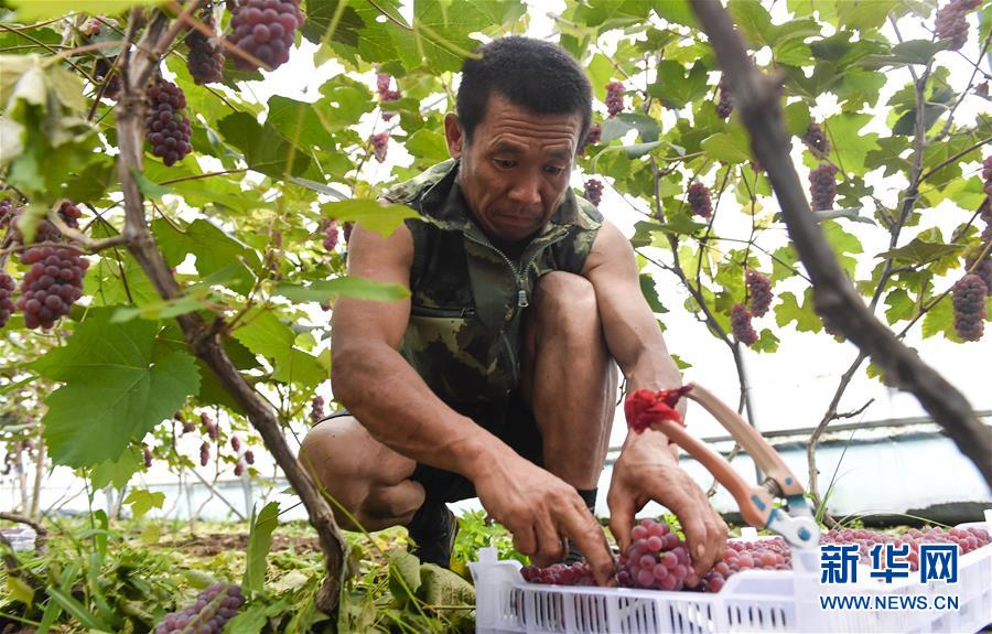 8月13日,在吉林省磐石市煙筒山鎮(zhèn)民主村,村民在葡萄大棚內(nèi)采摘葡萄。時(shí)下,吉林省磐石市煙筒山鎮(zhèn)棚膜葡萄園區(qū)內(nèi)的大棚葡萄進(jìn)入采摘季,農(nóng)民喜獲豐收。近年來(lái),當(dāng)?shù)赝ㄟ^“共創(chuàng)”與“扶持”相結(jié)合的模式大力發(fā)展特色農(nóng)業(yè),建設(shè)葡萄種植大棚300余棟,以此帶動(dòng)村集體經(jīng)濟(jì)發(fā)展,助力農(nóng)民增收致富。新華社記者許暢攝