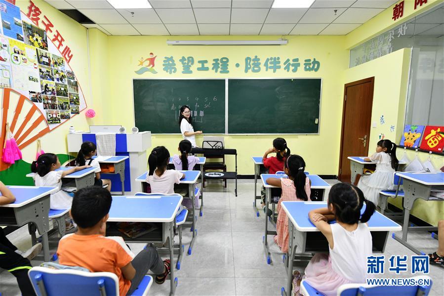 8月13日,在貴州省思南縣雙塘街道麗景社區(qū)易地扶貧搬遷安置點(diǎn),志愿者在給孩子們上音樂(lè)課。今年暑假期間,在貴州省銅仁市思南縣雙塘街道麗景社區(qū)易地扶貧搬遷安置點(diǎn),來(lái)自北京有研集團(tuán)和思南當(dāng)?shù)氐闹驹刚邆兝檬钇跁r(shí)間,給安置點(diǎn)的孩子們進(jìn)行音樂(lè)、體育、手工、安全教育等課程輔導(dǎo),幫助搬遷戶照看孩子,讓孩子們?cè)趯W(xué)習(xí)中度過(guò)一個(gè)快樂(lè)而有意義的暑假。新華社記者楊文斌攝