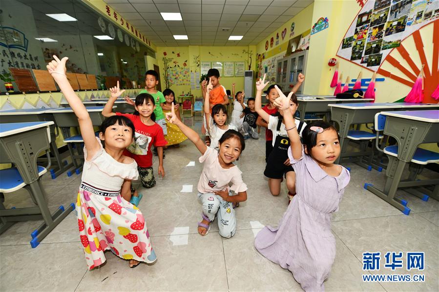 8月13日,貴州省思南縣雙塘街道麗景社區(qū)易地扶貧搬遷安置點的孩子在上音樂課。新華社記者楊文斌攝