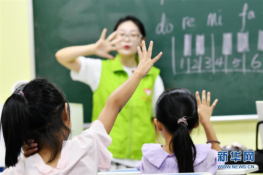 8月13日,在貴州省思南縣雙塘街道麗景社區(qū)易地扶貧搬遷安置點,志愿者在給孩子們上音樂課。今年暑假期間,在貴州省銅仁市思南縣雙塘街道麗景社區(qū)易地扶貧搬遷安置點,來自北京有研集團和思南當?shù)氐闹驹刚邆兝檬钇跁r間,給安置點的孩子們進行音樂、體育、手工、安全教育等課程輔導,幫助搬遷戶照看孩子,讓孩子們在學習中度過一個快樂而有意義的暑假。新華社記者楊文斌攝
