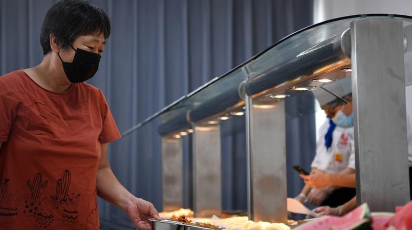 7月7日,老人在付村康養(yǎng)中心(老人家食堂)打餐。
