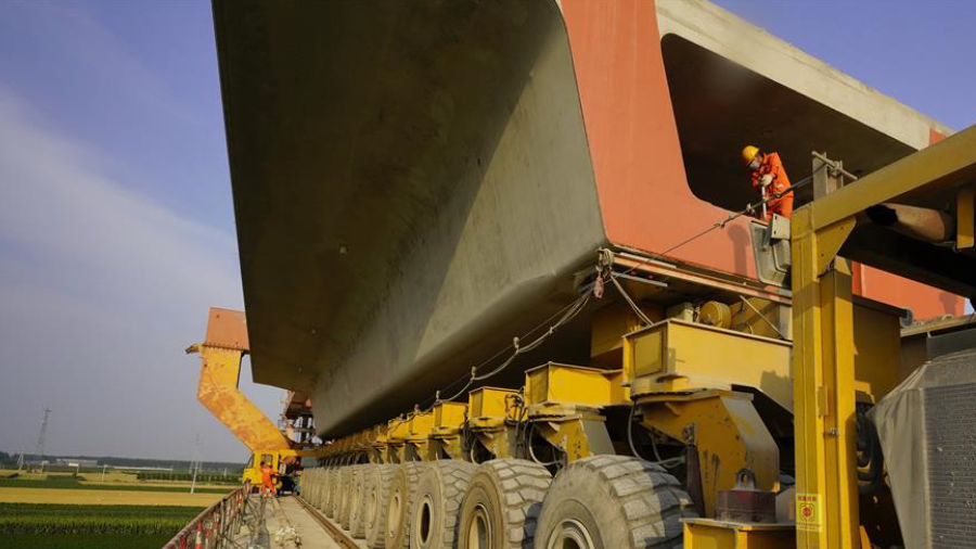 7月2日,工人在京唐城際鐵路河北省唐山市豐潤段建設(shè)工地施工。