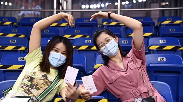 7月26日,在山東青島舉行的2019-2020賽季中國(guó)男子籃球職業(yè)聯(lián)賽(CBA)復(fù)賽第二階段(嶗山賽區(qū))比賽中,醫(yī)護(hù)人員、教師、公安戰(zhàn)線人士通過官方購(gòu)票平臺(tái),完成包括核酸檢測(cè)在內(nèi)的相關(guān)流程后進(jìn)場(chǎng)觀看了上海久事隊(duì)迎戰(zhàn)山東西王隊(duì)的比賽。 觀賽期間,觀賽者須全程佩戴口罩,對(duì)號(hào)入座,嚴(yán)格保持間隔一米就座。退場(chǎng)時(shí),觀眾須按照自后向前、先兩邊后中間的順序,保持“一米線”社交距離有序退場(chǎng)。