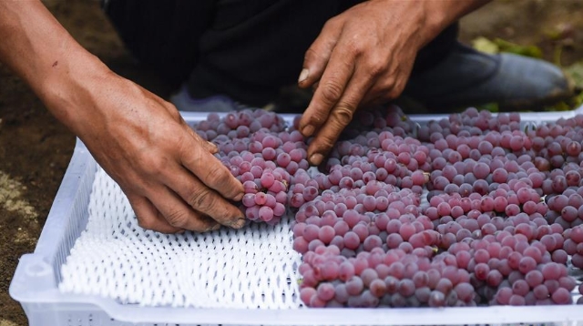 近年來,當?shù)赝ㄟ^“共創(chuàng)”與“扶持”相結(jié)合的模式大力發(fā)展特色農(nóng)業(yè),建設葡萄種植大棚300余棟,以此帶動村集體經(jīng)濟發(fā)展,助力農(nóng)民增收致富。