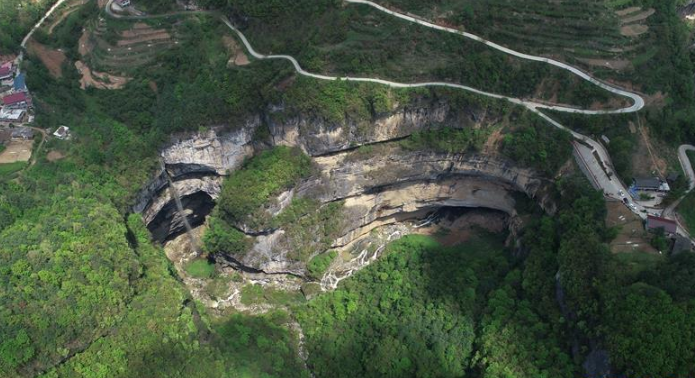位于陜西省漢中市寧強縣的地洞河天坑,是禪家?guī)r天坑群中規(guī)模最大的一處天坑,坑內分布有石鐘乳、石筍,具有極高的地質研究價值。