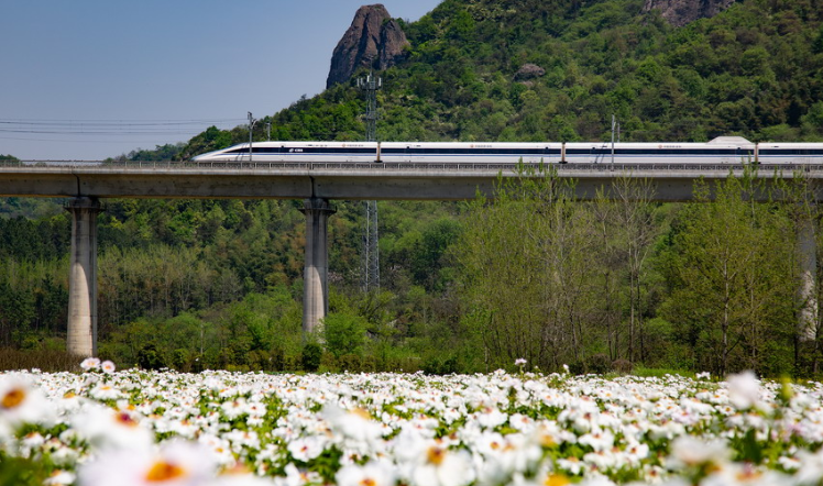 隨著氣溫回升,安徽省銅陵市境內的鳳丹競相綻放,高鐵列車穿行其間,成為春日里一道美麗的風景線。