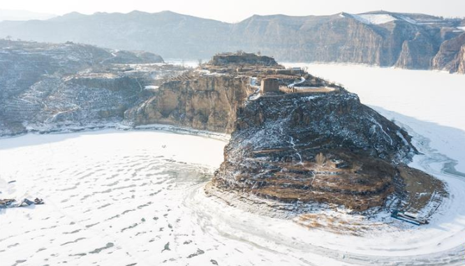 這是2月17日無人機拍攝的老牛灣雪景。黃河老牛灣位于山西省和內(nèi)蒙古自治區(qū)交界處。