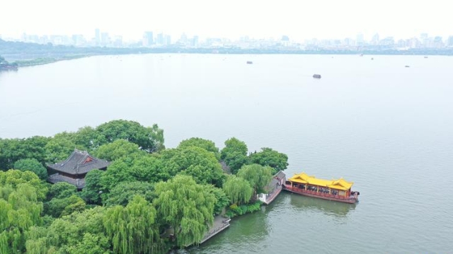 隨著氣溫升高,杭州西湖綠意蔥蘢,展現(xiàn)出柔美的湖光山色。