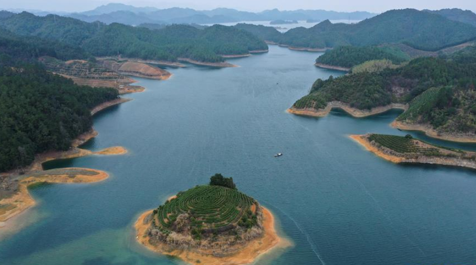 當(dāng)日,浙江省淳安縣春茶全面開(kāi)采,千島湖上星星點(diǎn)點(diǎn)的“島嶼茶園”浮在碧波之上,如夢(mèng)似幻。