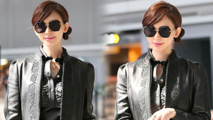 林志玲近日現身虹橋機場,黑超遮面的她身著黑色皮風衣,挎著大牌包十足御姐范,一路大方任拍,相當親和!