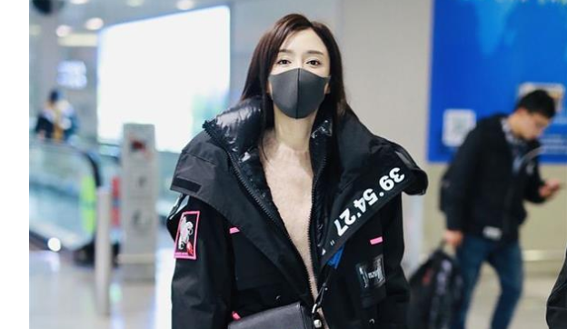 秦嵐潮味棉服亮相機(jī)場 口罩遮面露甜笑