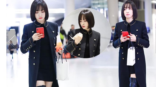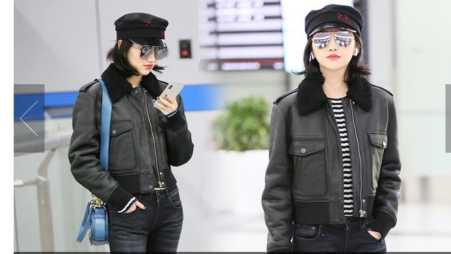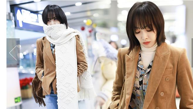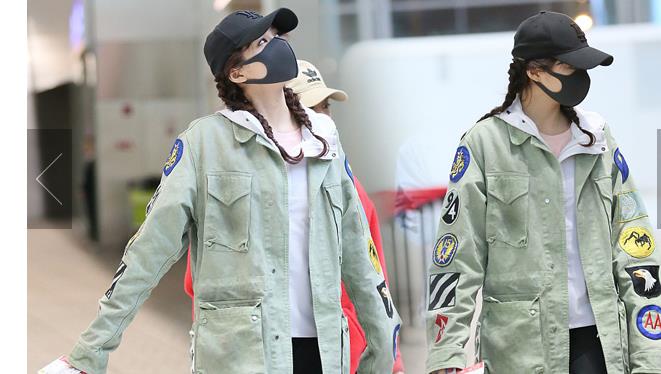 2018年12月3日,上海,秦嵐亮相機(jī)場。潮味棉服亮相機(jī)場變酷女孩,口罩遮面露甜笑心情靚。