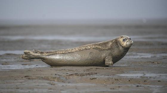 遼寧盤錦雙臺河口海域灘涂上出現(xiàn)大批洄游棲息的斑海豹。每年2月到5月,成群的斑海豹都會洄游至遼河入海口處活動。