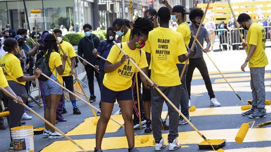 紐約特朗普大廈前路面涂上“黑人的命也是命”標(biāo)語(yǔ)