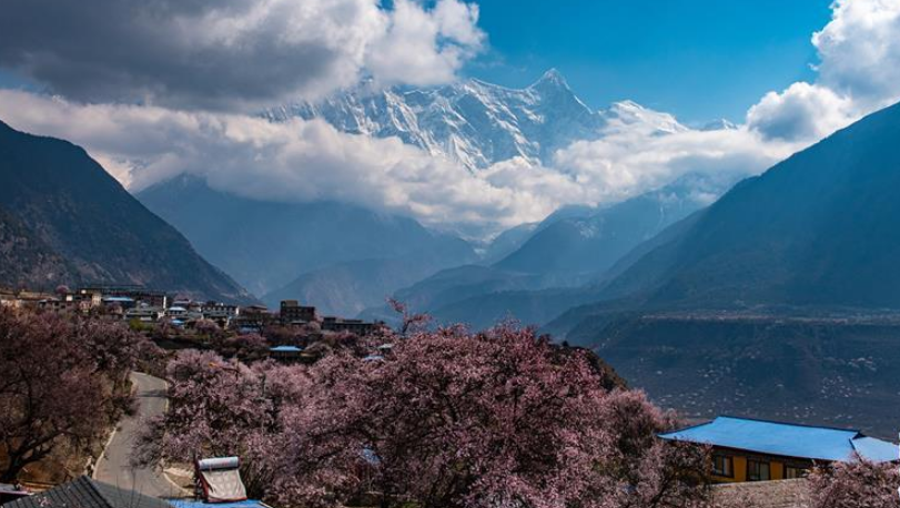 春天到來,雅魯藏布江大峽谷中的桃花次第開放,將河谷兩岸裝點得如詩如畫。