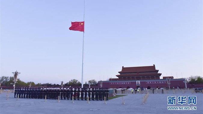 4月4日,北京天安門廣場降下半旗,表達對抗擊新冠肺炎疫情斗爭犧牲烈士和逝世同胞的深切哀悼。