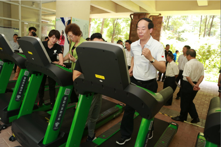 下午,調(diào)研小組來(lái)到了龍華區(qū)中航格瀾陽(yáng)光花園小區(qū),實(shí)地調(diào)研該小區(qū)的共享運(yùn)動(dòng)健身器材,并體驗(yàn)了該社區(qū)的智能跑步機(jī)。