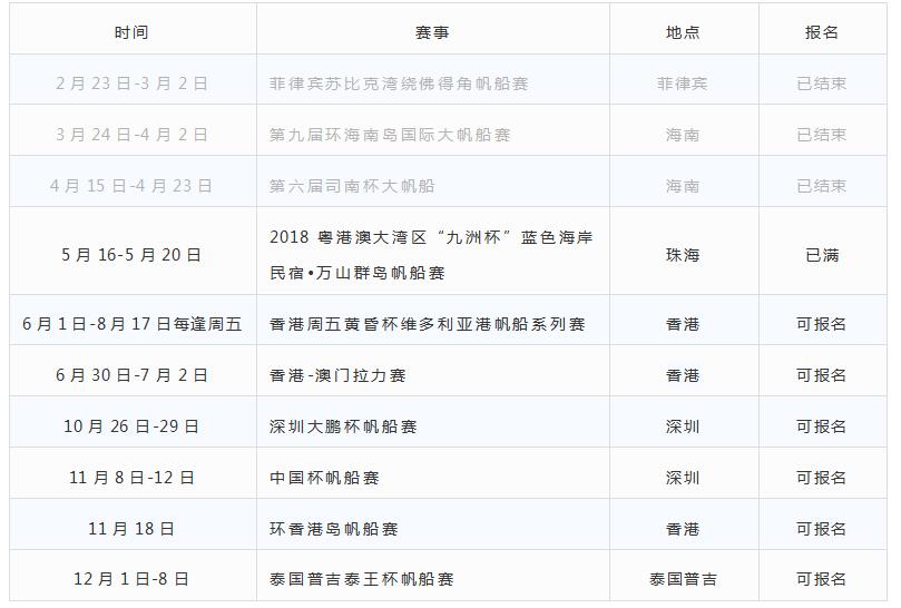 2018年已經(jīng)參加了三場國際大型帆船賽事,2月份在菲律賓舉辦的蘇比克灣繞佛得角帆船賽、3月份的環(huán)海南島帆船賽以及4月份的司南杯帆船賽,亞太航海三場比賽全部豪取桂冠!接下來的5-12月,亞太航海還將參加7場國際帆船賽事,繼續(xù)創(chuàng)造普通人的航海傳奇!同時(shí)接受嘉賓船員體驗(yàn)報(bào)名、企業(yè)贊助。