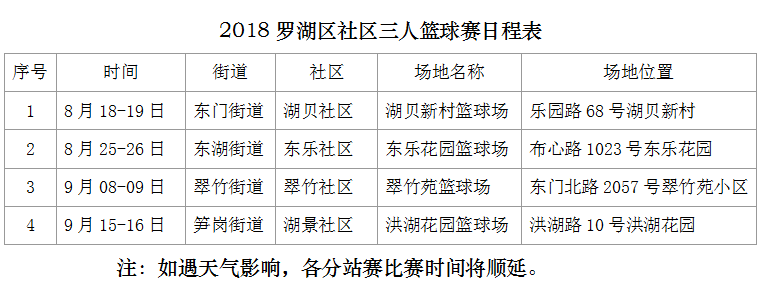 “2018羅湖區(qū)社區(qū)三人籃球賽”分成四個分站賽。目前,羅湖區(qū)東門街道湖貝社區(qū)的“東門站”首場分站賽已決出勝負(fù),接下來的三個分站賽地點分別是羅湖區(qū)東湖街道東樂社區(qū)、羅湖區(qū)翠竹街道翠竹社區(qū)和羅湖區(qū)筍崗街道湖景社區(qū)。