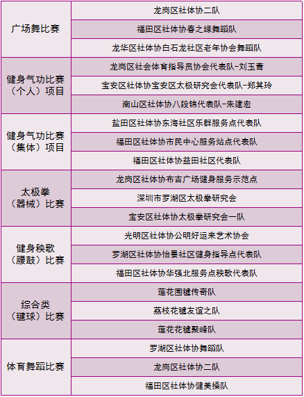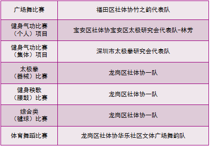 福田區(qū)社會體育指導(dǎo)員協(xié)會、羅湖區(qū)社會體育指導(dǎo)員協(xié)會、鹽田區(qū)社會體育指導(dǎo)員協(xié)會、龍崗區(qū)社會體育指導(dǎo)員協(xié)會