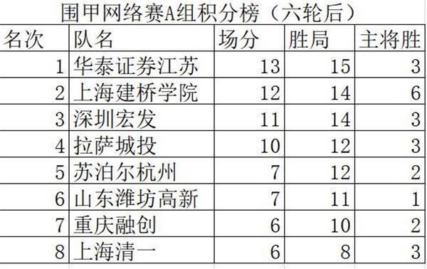 [附:2020年“華為手機杯”中國圍棋男子甲級隊聯(lián)賽網(wǎng)絡(luò)熱身賽A組積分排名表]