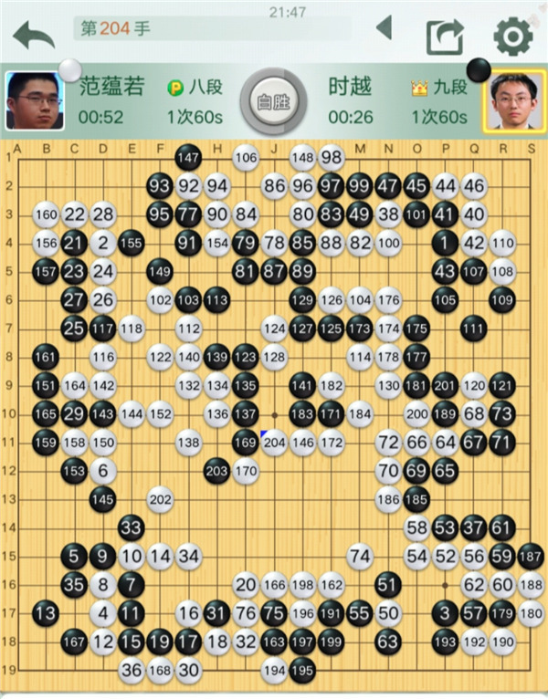 第二臺:范蘊若八段(勝)時越九段(主將之戰(zhàn))
