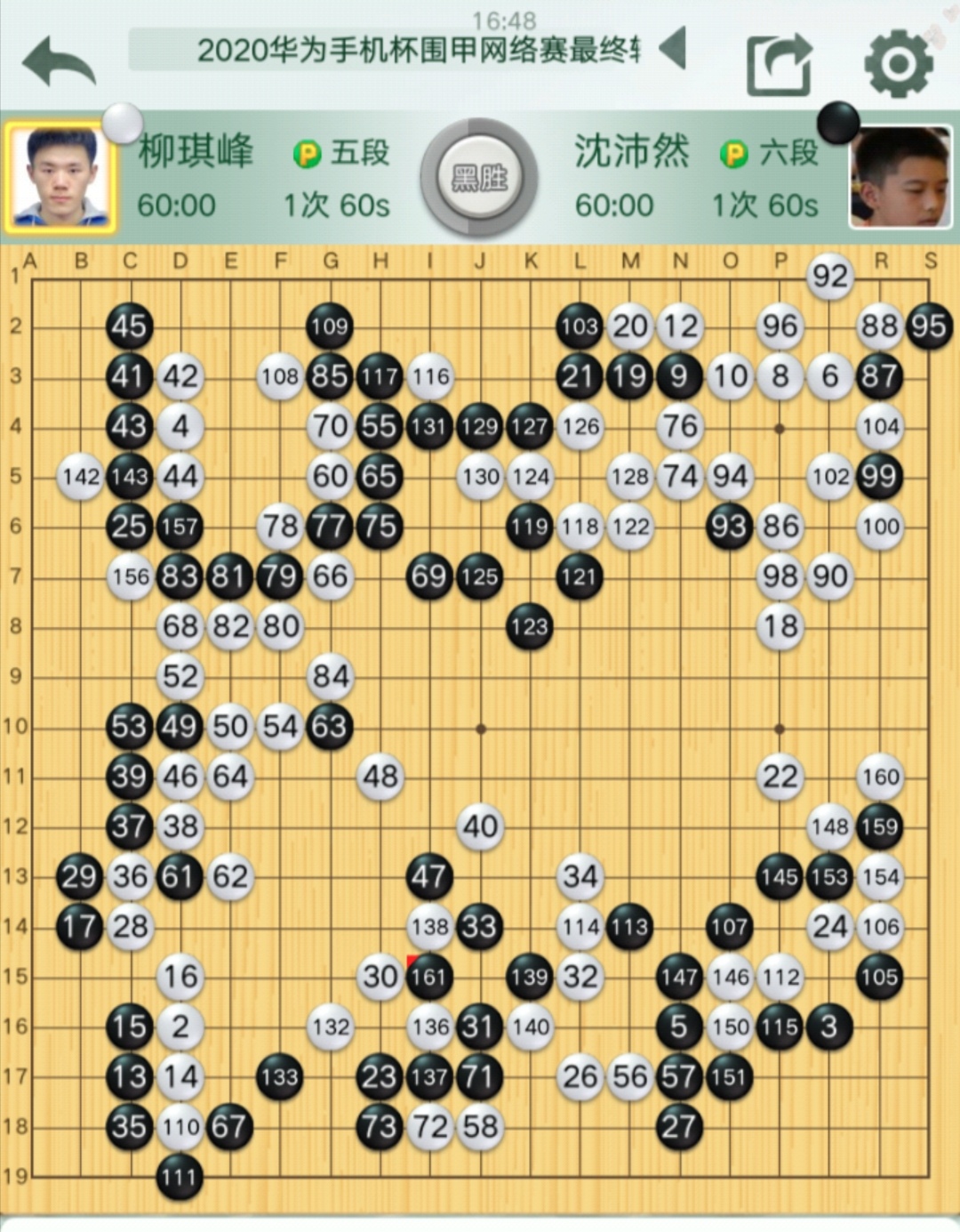 陶欣然自評(píng):布局階段至44的轉(zhuǎn)換差不多。黑63動(dòng)出至79收獲不大,白方確立優(yōu)勢。白116吃住左下角后領(lǐng)先不少了。
